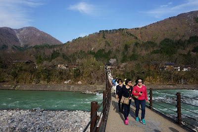 | 走過吊橋,就像就走過時光隧道一般的進入純樸的白川鄉了 |
