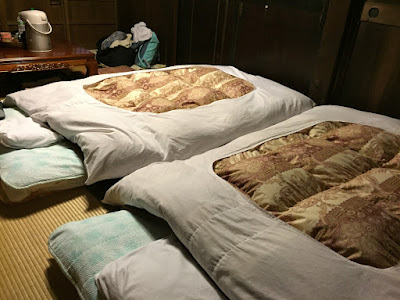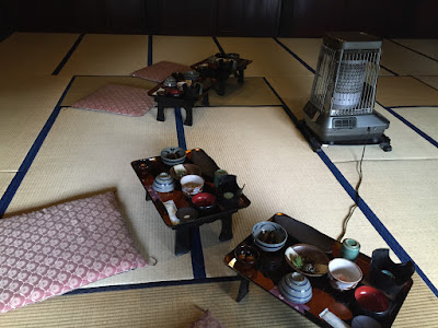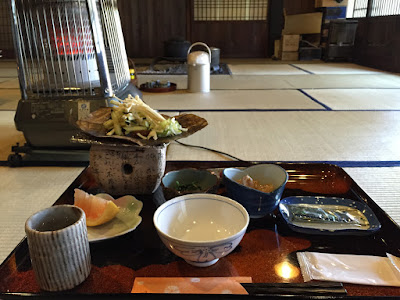 白川鄉其實面積不算大,走個十分鐘就到達我們訂的民宿了。門沒鎖,我們脫掉鞋子就推門進去,主人是一對老夫婦。老爺爺應該是不會說英語的,招待我們進房的責任就落在婆婆身上。她用簡單的英語單詞告訴我們晚飯和早餐的時間,以及公共浴室的位置後,我們就先放下行李稍事休息。