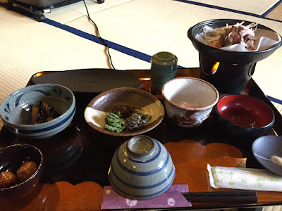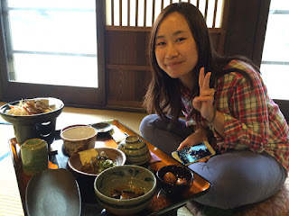 日本的餐點不論平貴,依舊是那麼精緻。大大小小的盤碗裡裝著的雖然是最家常的食材,用樸素的煮法烹調而成,但就是吃到食材本身新鮮的甜味。右上角的是當地飛驒牛料理,國產牛就是非常好吃,入口即溶;而且份量一點都不吝嗇。