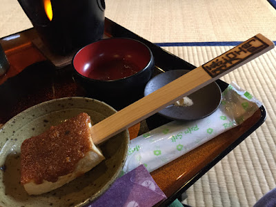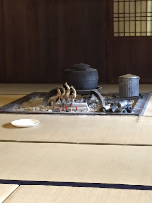 吃過和牛還有當地家常的烤魚,老伯伯一早已在烤了。小時候看漫畫看到這種炭爐烤鱼,現在就真的嘗到了!炭燒的很香,肉質鮮嫩,比想像中好吃很多!
