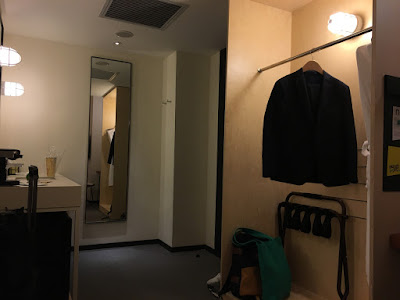 這次下榻的中房面積24平方米,有一張150x200cm 的中床。面積也算寬倘,驚喜的是有一大片窗戶,側望中山北路開揚的景觀。老實說這是台北中價飯店中不常見的(窗戶通常都是很小,不然就沒窗)。